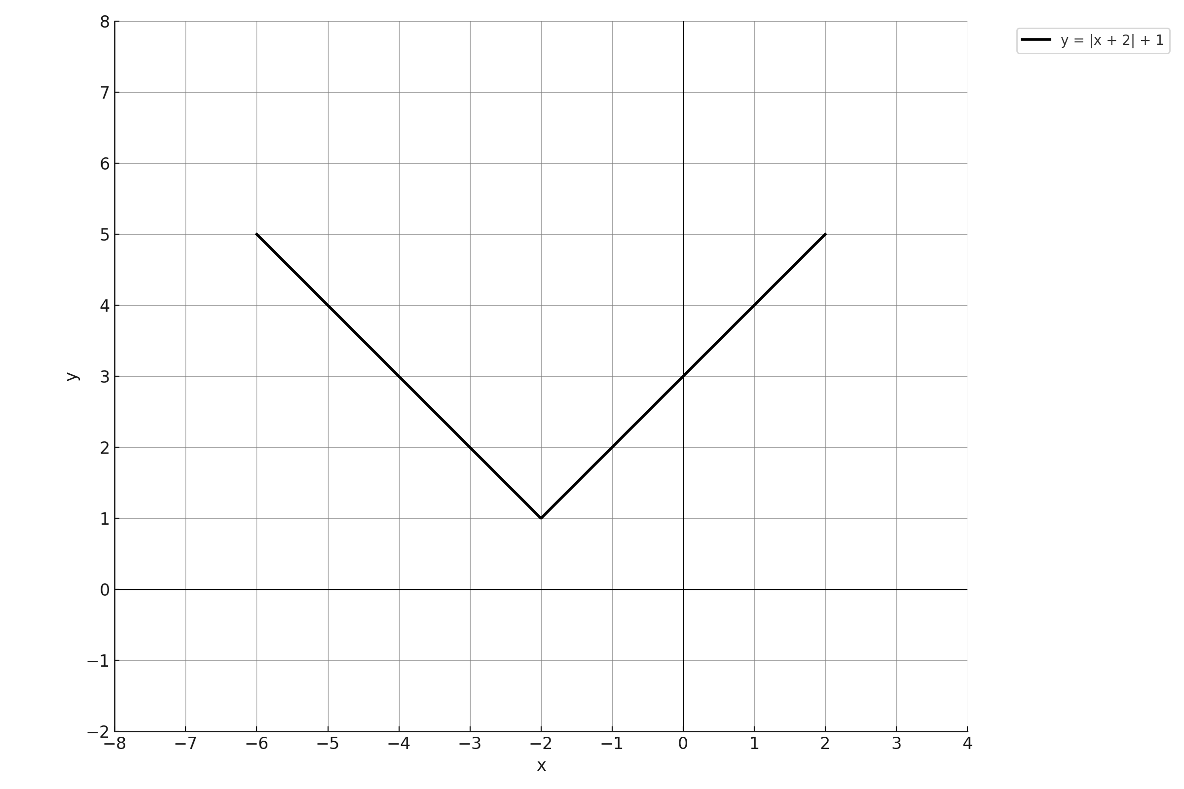 Now we have the complete function: \(\mathrm{f(x) = |x + 2| + 1}\)