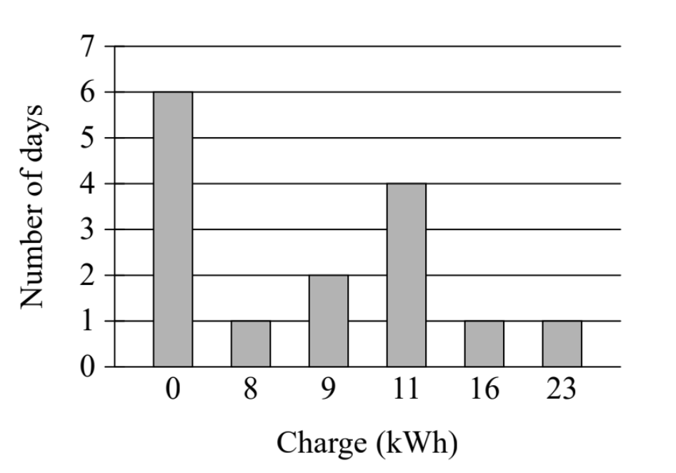 - Read one of the other bars with height 1 (at 8, 16, or 23 kWh)
