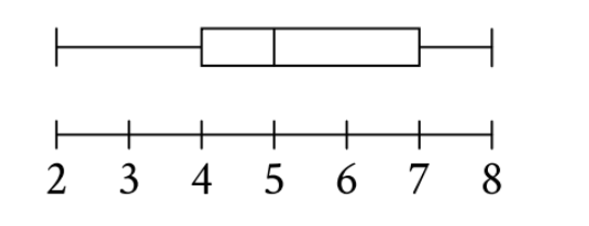 [Box plot showing a scale from 2 to 8, with box extending from approximately 4 to 6, median line at 5, left whisker to 2, right whisker to 8]