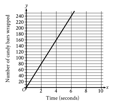The graph shown models the number of candy bars a certain machine wraps with a label in x seconds. According...
