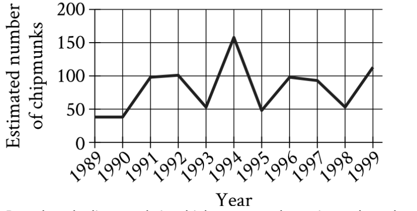 The line graph shows the estimated number of chipmunks in a state park on April 1 of each year from 1989 to 1999.