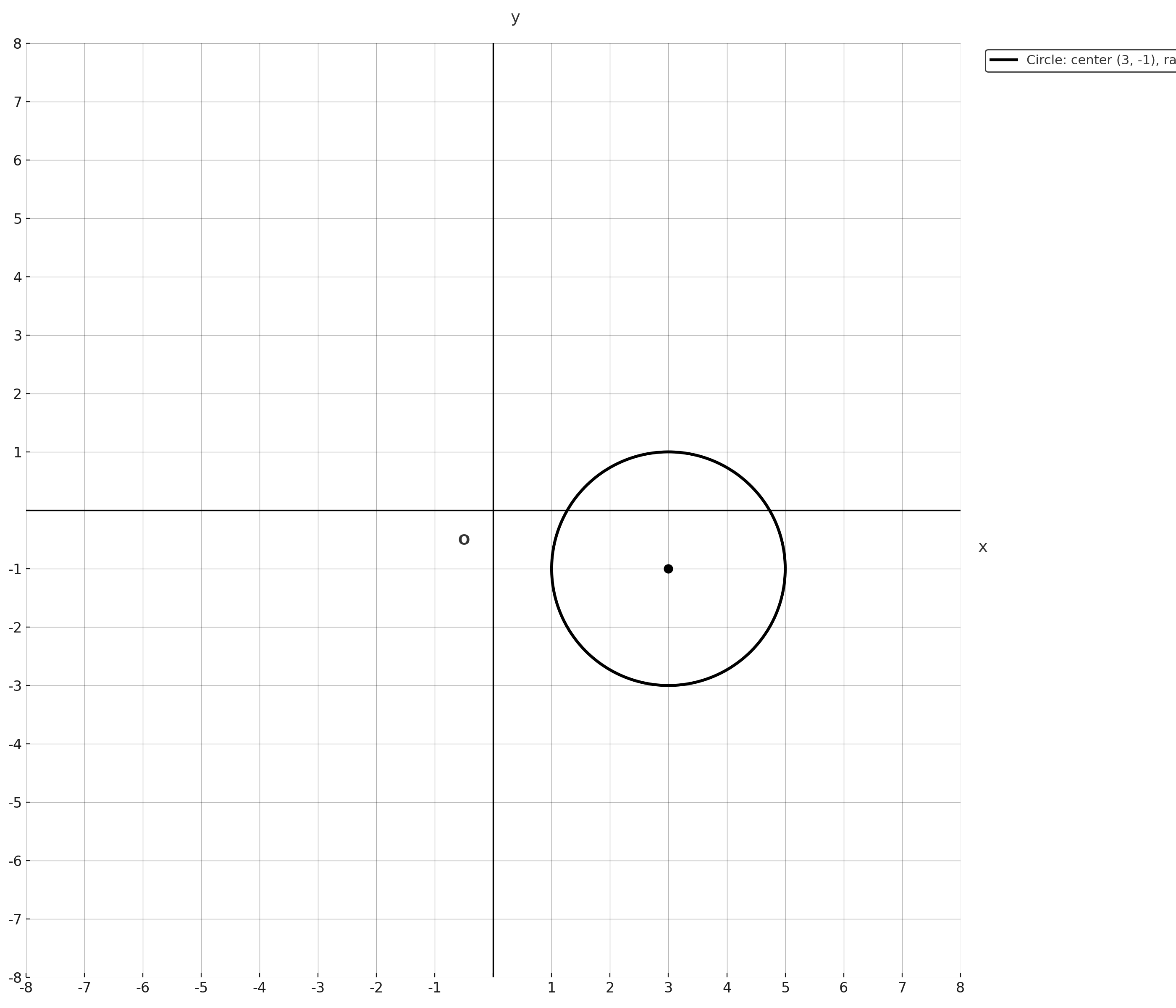 - So we have: \((x - (-2))^2 + (y - 0)^2 = 3^2\)