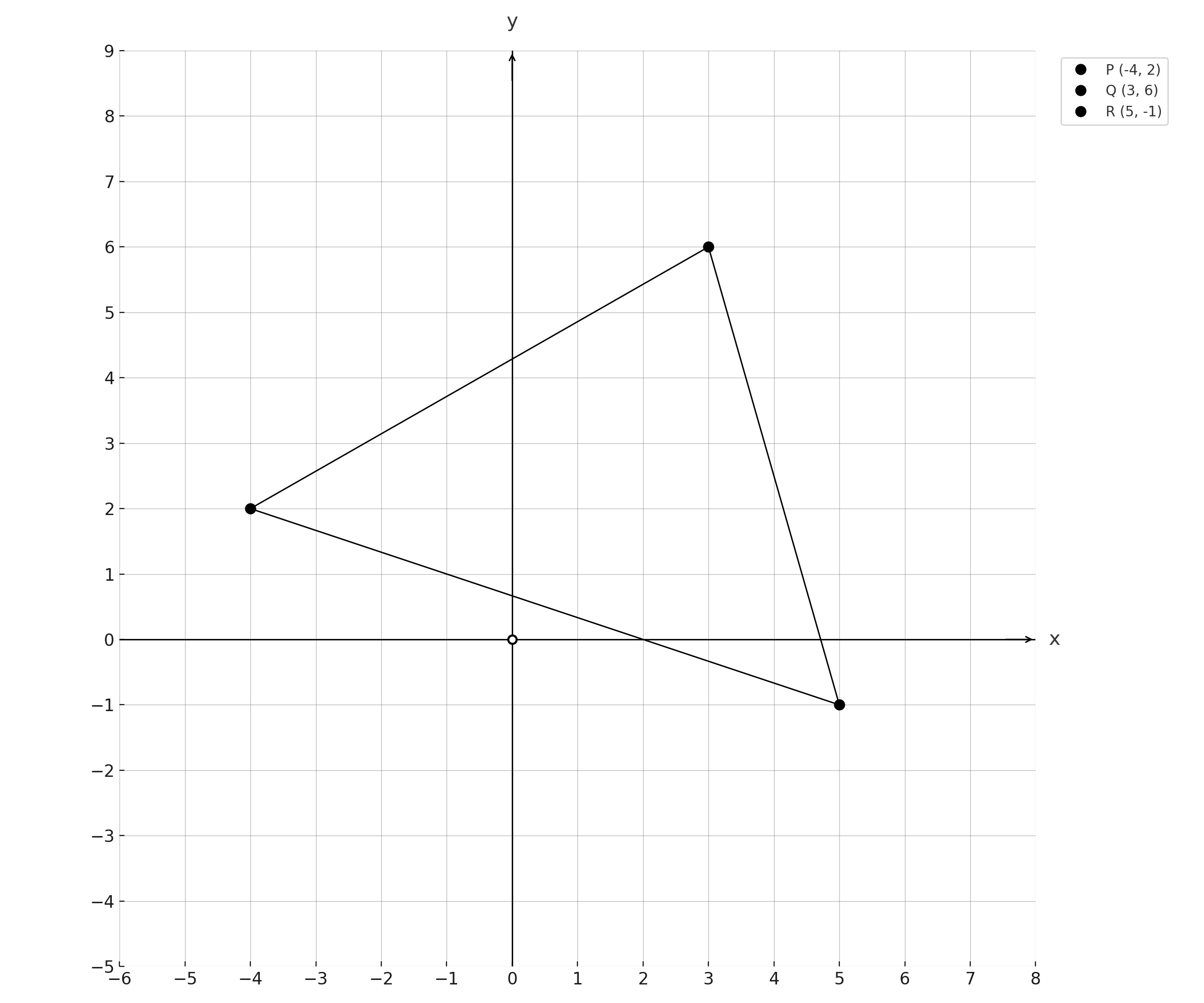 - Point R is at \((5, -1)\) — 5 units right of the origin, 1 unit down
