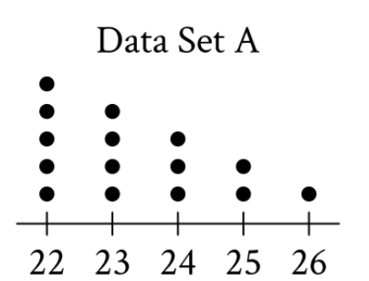 Data Set A Dot plot showing: At position 22: 4 dots vertically stacked At position 23: 4 dots vertically stacked...