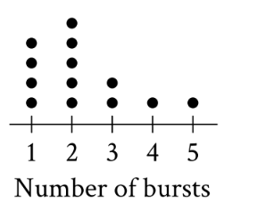 The dot plot represents a data set of the number of bursts for 13 eruptions of a steam vent. If...