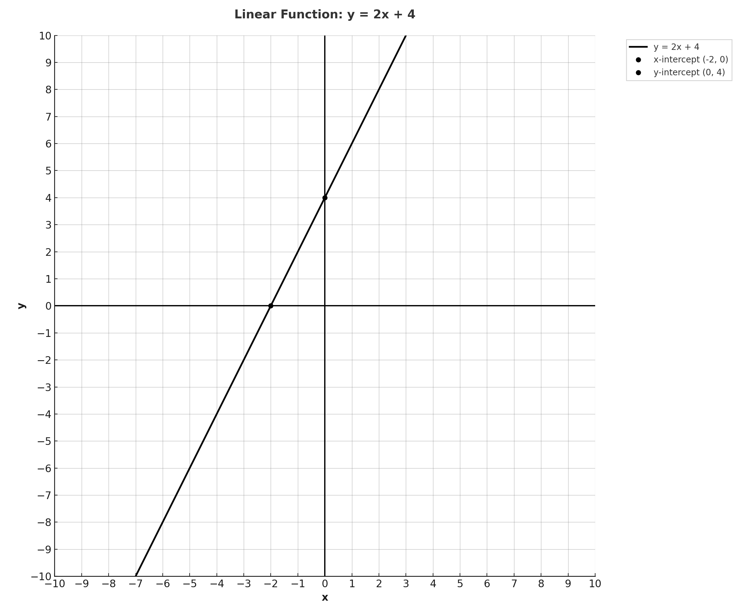 - The line shown is \(\mathrm{y} = 2\mathrm{x} + 4\)