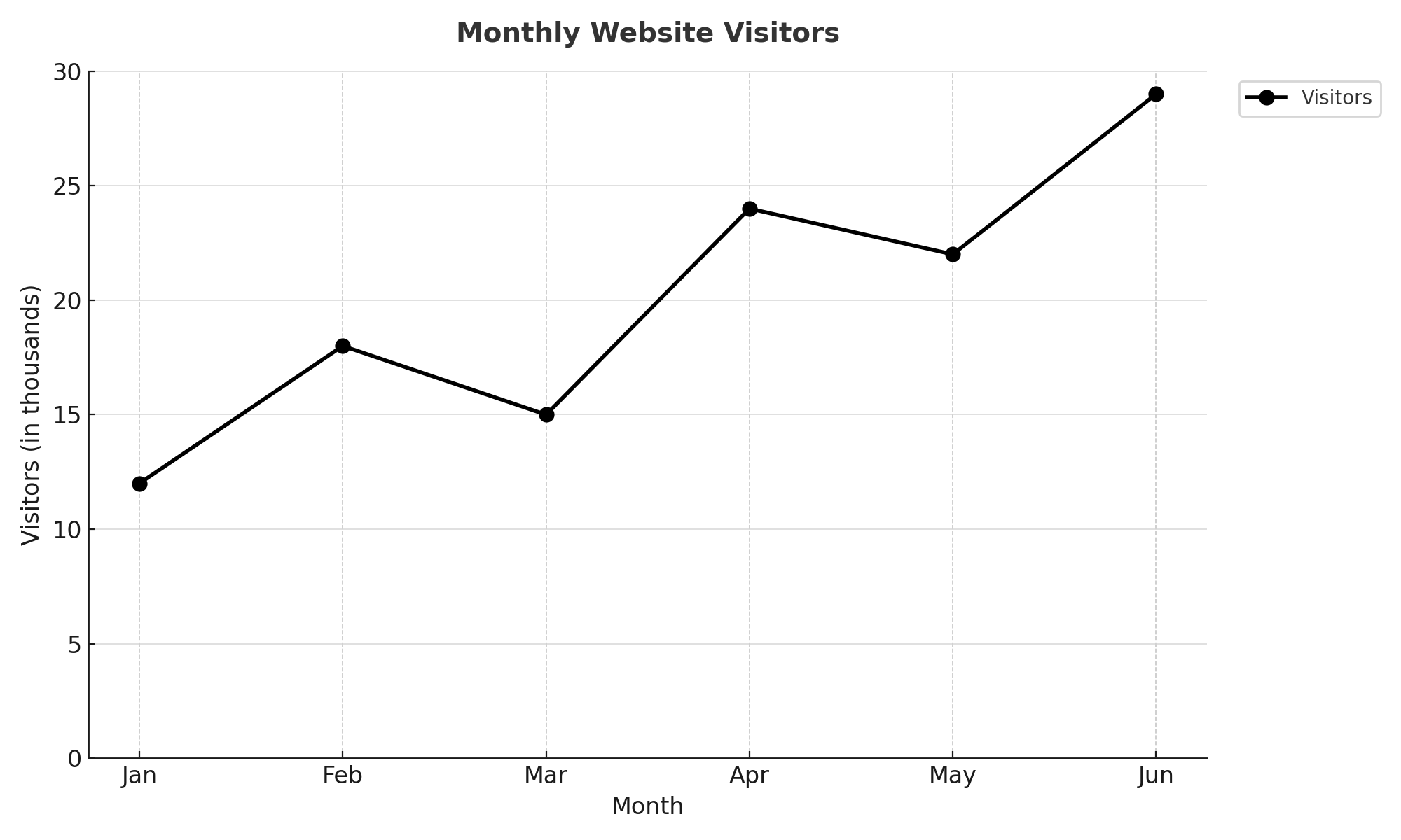 The line graph shows the number of visitors, in thousands, to a website for the first six months of a...