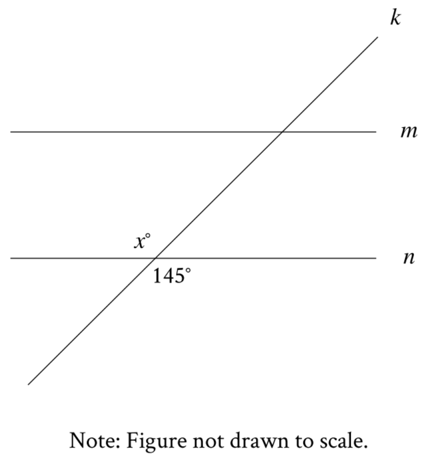 Note: Figure not drawn to scale.In the figure, line m is parallel to line n, and line k intersects both...