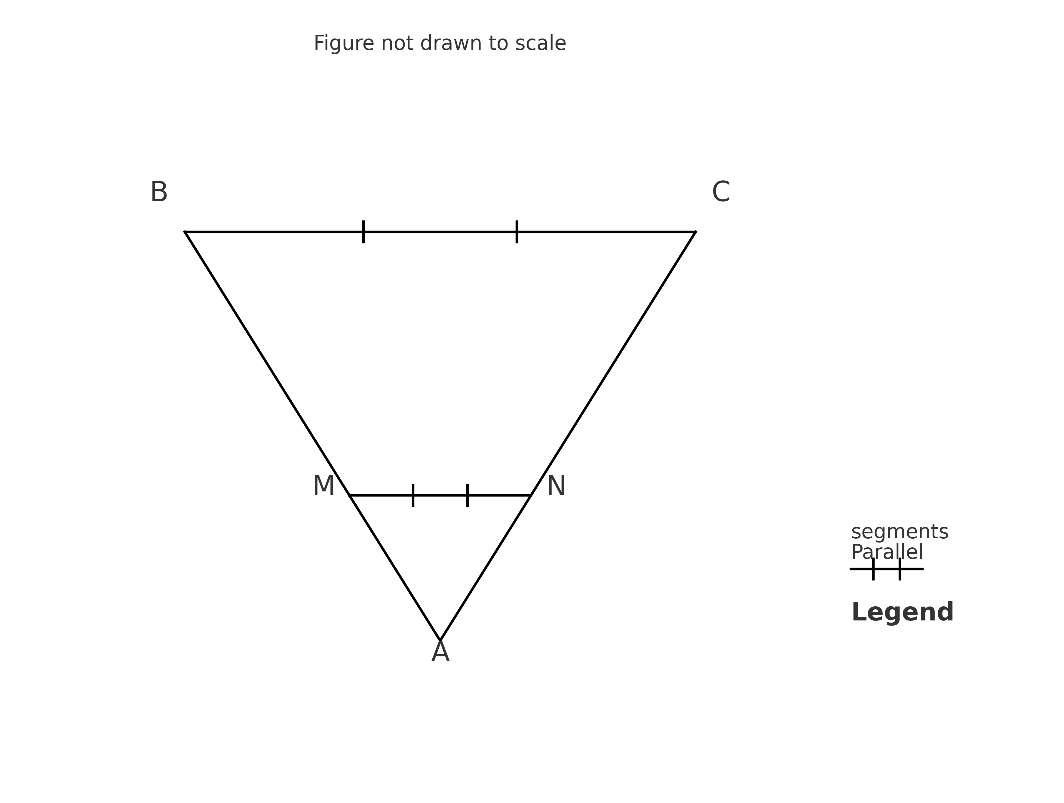 - Segment \(\mathrm{MN}\) is drawn parallel to \(\mathrm{BC}\), as shown in the figure.