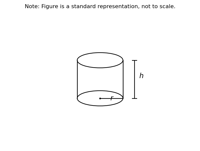 The figure shown is a right circular cylinder with a radius of r and height of h. The lateral surface...