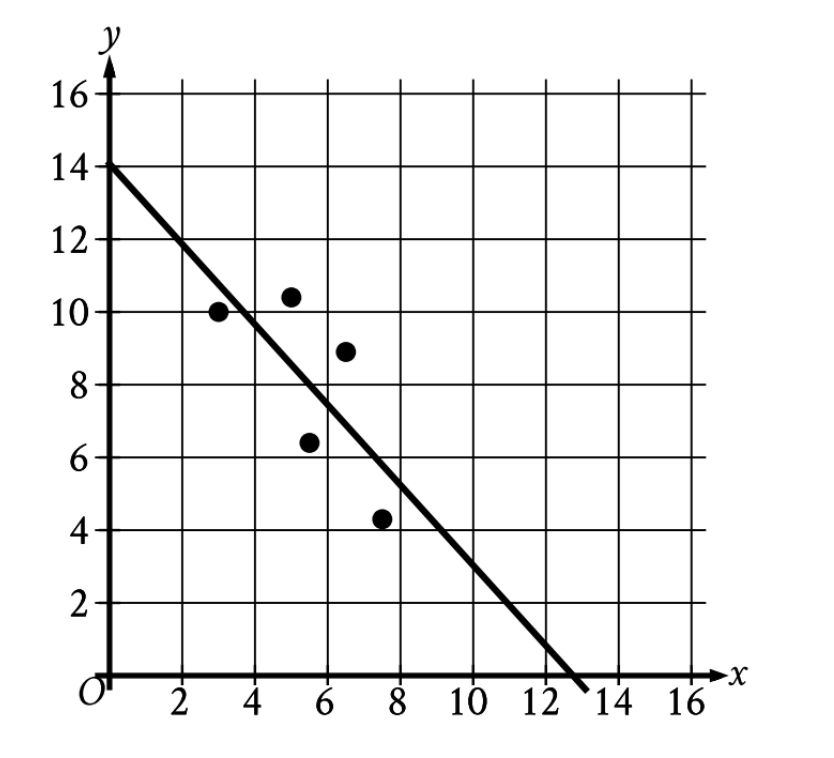 \(\mathrm{m = \frac{0 - 13}{12 - 0} = \frac{-13}{12} \approx -1.08}\)