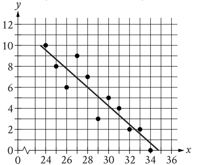 - At \(\mathrm{x = 24}\), the line passes through approximately \(\mathrm{y = 10}\)