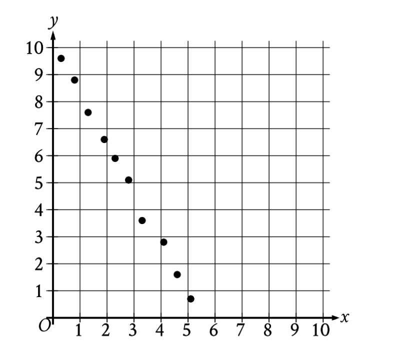 - The leftmost point shown is around \(\mathrm{(0.5, 9.6)}\)