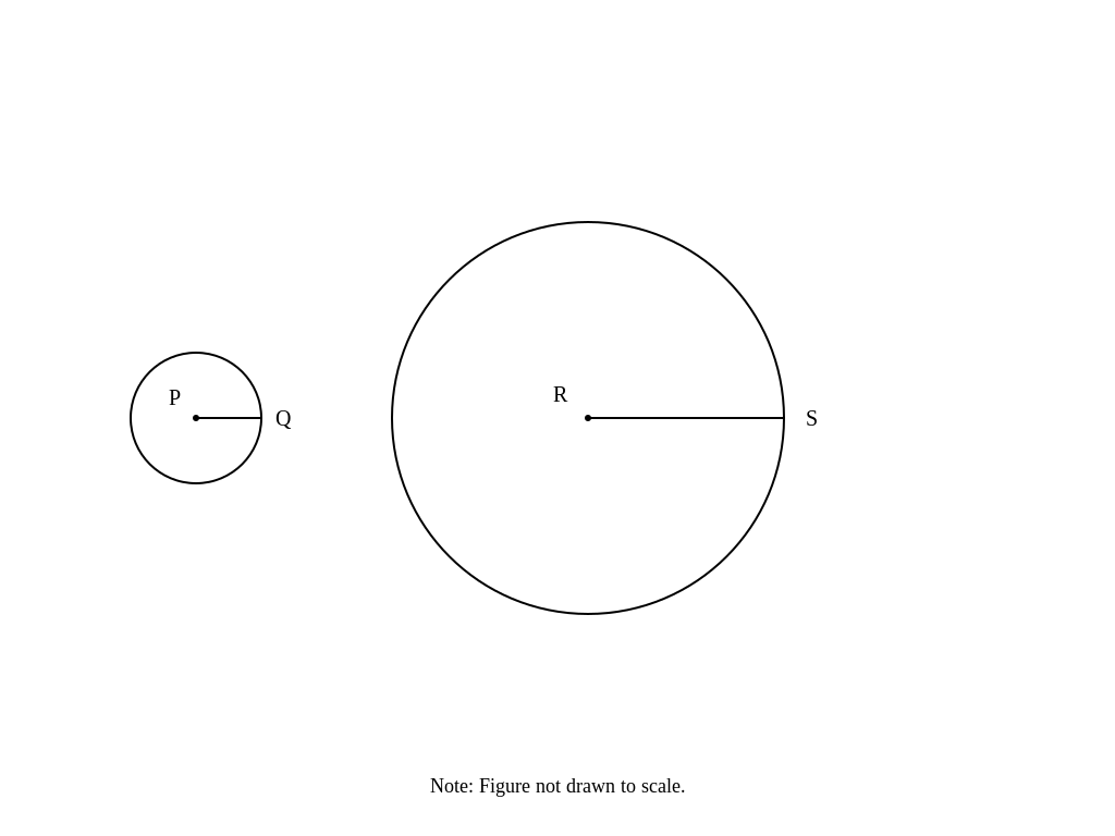 This tells us that circle R is 3 times as large as circle P in all linear dimensions.