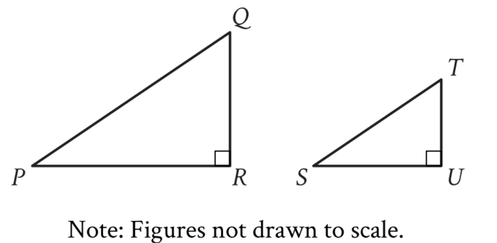 Right triangles PQR and STU are similar, where P corresponds to S. If the measure of angle Q is 18°,...