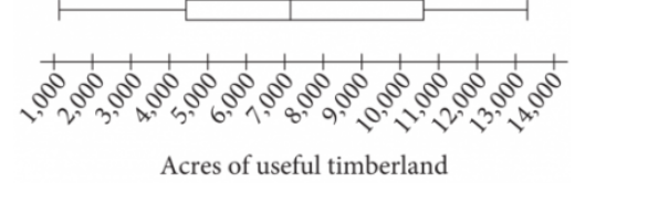 The number of acres of useful timberland in 13 counties in California is summarized in the box plot above. Which...