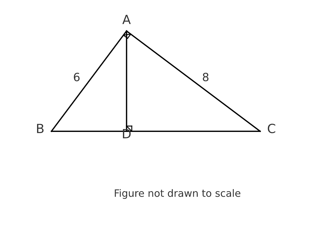 Weak INFER skill: Students might not recognize that they need to find BC first before they can solve for AD. They might try to use the given side lengths (6 and 8) directly in some incorrect formula or relationship, leading to confusion about how to proceed.