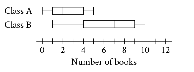 - Range for Class A = \(\mathrm{5 - 0 = 5}\) books