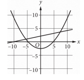 - Second intersection: On the right side, around \(\mathrm{x} = 5\), the line crosses the parabola again