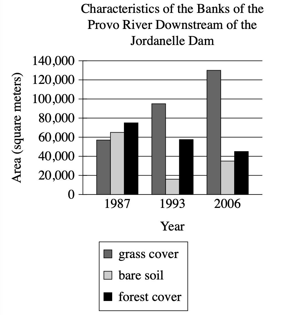 - Since Martinez concluded that the dam benefited grass but didn't benefit trees, we need graph data showing grass improving while trees got worse after 1992
